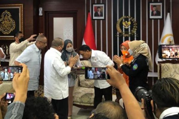 LaNyalla yang didampingi Ketua Komite III DPD RI Sylviana Murni dan Senator asal NTB, Evi Apita Maya, dalam kesempatan itu mendoakan Zainudin Amali, serta juga ikut memberikan sepotong kue kepada Menpora dengan suasana yang terlihat akrab.