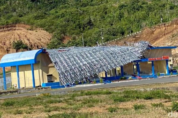 Atap Bandara Siau ambruk akibat diterjang hujan lebat. Foto: detik.com