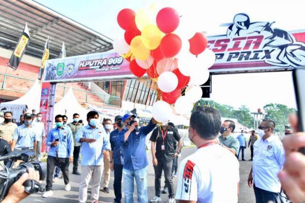 Subang, Jurnas.com - Ketua MPR sekaligus Ketua Umum Ikatan Motor Indonesia (IMI) Bambang Soesatyo (Bamsoet) membuka Seri 1 Road Race H. Putra Indonesia Cup Prix 2021 (ICP 2021), di Sirkuit Gery-Mang Subang, Jawa Barat.