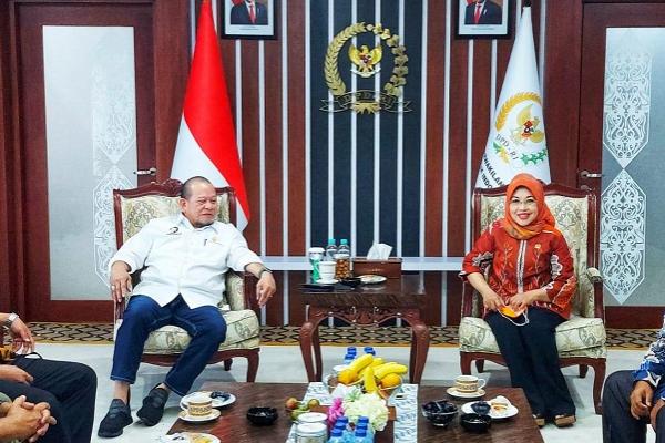 Ketua DPD RI LaNyalla Mahmud Mattalitti dan Ketua Komite III DPD RI Sylviana Murni berbincang tentang kebudayaan