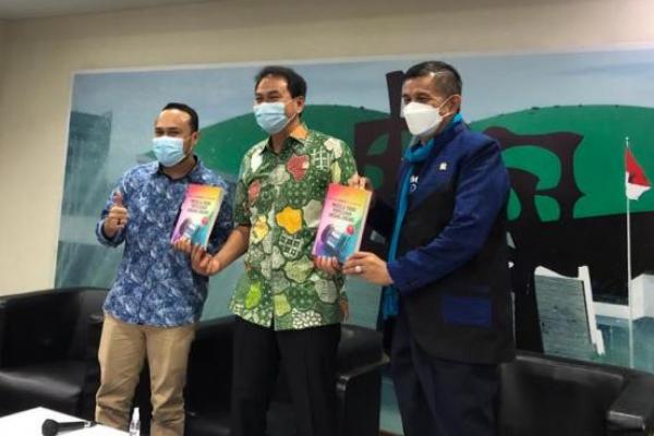 Wakil Ketua DPR RI, Azis Syamsuddin (tengah), anggota Komisi III DPR RI dari Fraksi Demokrat, Hinca Panjaitan dan Ketua Koordinatoriat Wartawan Parlemen (KWP) periode 2020-2022, Marlen Sitompul (kiri) usai diskusi forum legislasi, Selasa (13/4). (Foto: Jurnas)