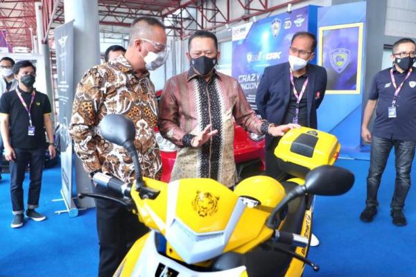 Jakarta, Jurnas.com - Ketua MPR Bambang Soesatyo (Bamsoet) mengenalkan motor listrik produksi dalam negeri, Bike Smart Elektrik (BS Elektrik) kepada Menteri Perindustrian Agus Gumiwang Kartasasmita yang turut berpartisipasi dalam Indonesia International Motor Show 2021 (IIMS 2021).