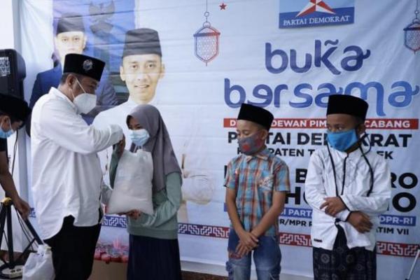 Ketua Fraksi Partai Demokrat, Edhie Baskoro Yudhoyono alias Ibas saat menggelar acara buka bersama dan penyerahan bantuan sembako bersama anggota DPC Partai Demokrat Dapil VII