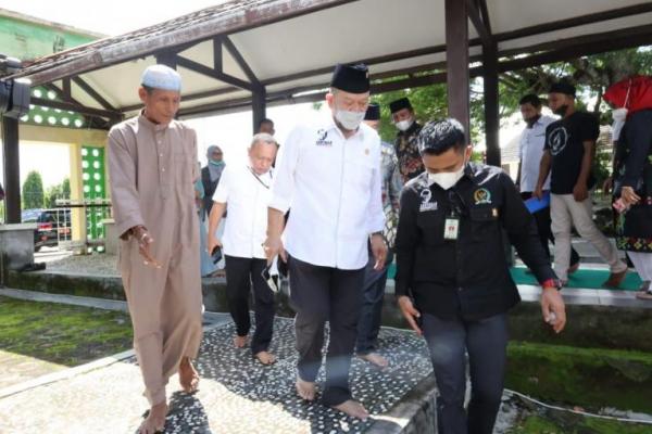 “Kehormatan luar biasa atas kedatangan Bapak Ketua DPD RI beserta rombongan. Alhamdulillah kita berada di tempat yang mubarak ini. Untuk diketahui, air wudhu di sini memiliki kandungan yang sangat luar biasa, karena sudah melalui penelitian,” jelas Amran.