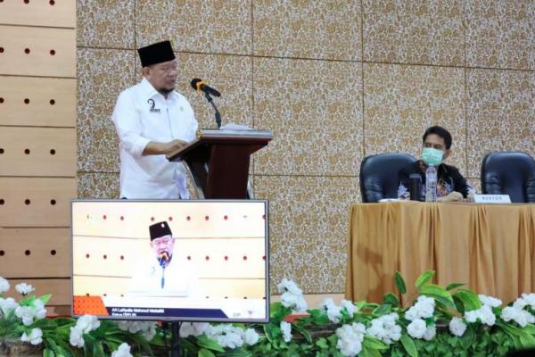 Ketua DPD RI saat menghadiri Rapat Kerja Nasional Komunitas Penyedia Tenaga Kerja Internasional (Kapten) Indonesia, yang digelar di Asrama Haji Sudiang, Makassar, Sabtu (29/5). (Foto: Dok. Humas DPD RI)