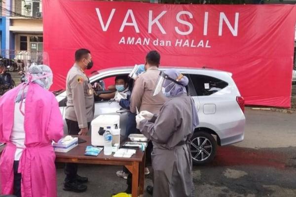 Vaksinasi drive thru di Polres Jaksel. (Foto : Jurnas/Ist).