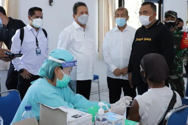 Menteri Kelautan dan Perikanan, Sakti Wahyu Trenggono mengunjungi pelaksanaan vaksinasi di Pelabuhan Perikanan Nusantara (PPN) Pengambengan di Jembrana, Bali, Jumat (30/7/2021).. (Foto: Ist)